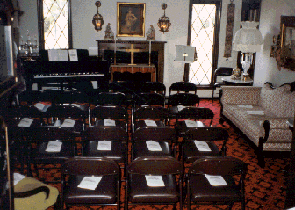 All is ready for Epworth’s first Evening Prayers service, conducted January 31, 1999, in the living room of a home.