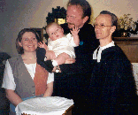 Patrick Nels Millar with his parents, Robyn and Keith, and with Pastor Thelander, after his baptism during Epiphany.